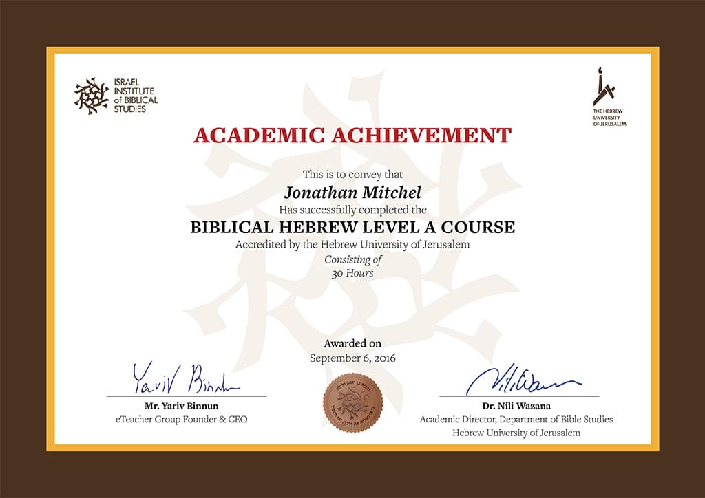 Earn 3 credit points per level in any course in the Department of Biblical Languages. Credit points are acknowledged by most academic institutes around the world, allowing you to use them in order to pursue an academic degree.