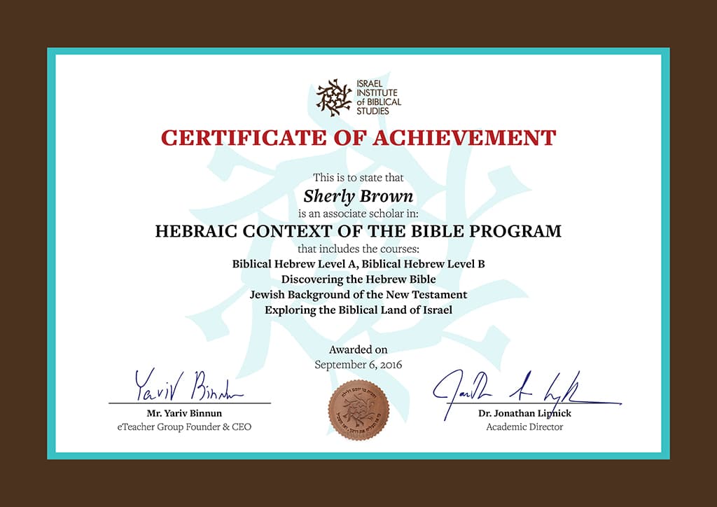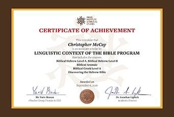 The Hebraic Context of the Bible certificate program by the Biblical Institute consists of five courses that will provide you with the knowledge and ability to understand, interpret, and teach the Scriptures with far greater clarity.