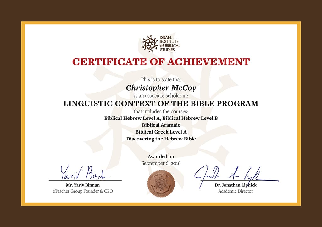 The Linguistic Context of the Bible certificate program by the Biblical Institute consists of five courses with a linguistic emphasis to provide you with all of the tools needed to read and understand the Bible in its original languages.