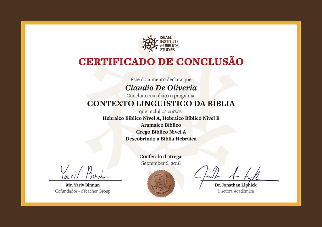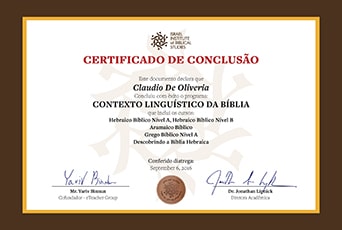 O programa certificado Contexto Linguístico da Bíblia, do do Instituto de Estudos Bíblicos de Israel, é composto por cinco cursos com ênfase em linguística, que oferecerão as ferramentas necessárias ler e entender a Bíblia em seus idiomas originais.
