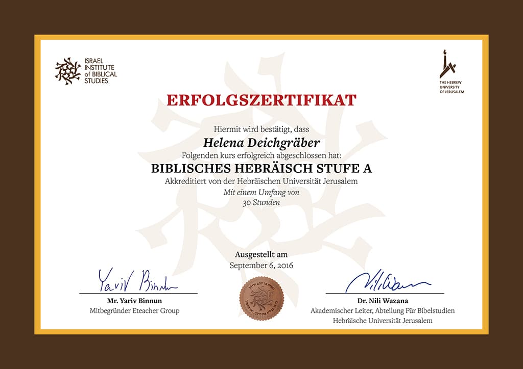 Verdienen Sie 3 Punkte pro Stufe in jedem Kurs der Abteilung für Biblische Sprachen. Die Studienpunkte werden von den meisten akademischen Instituten weltweit anerkannt, sodass Sie sie zur Erlangung eines akademischen Grades verwenden können.